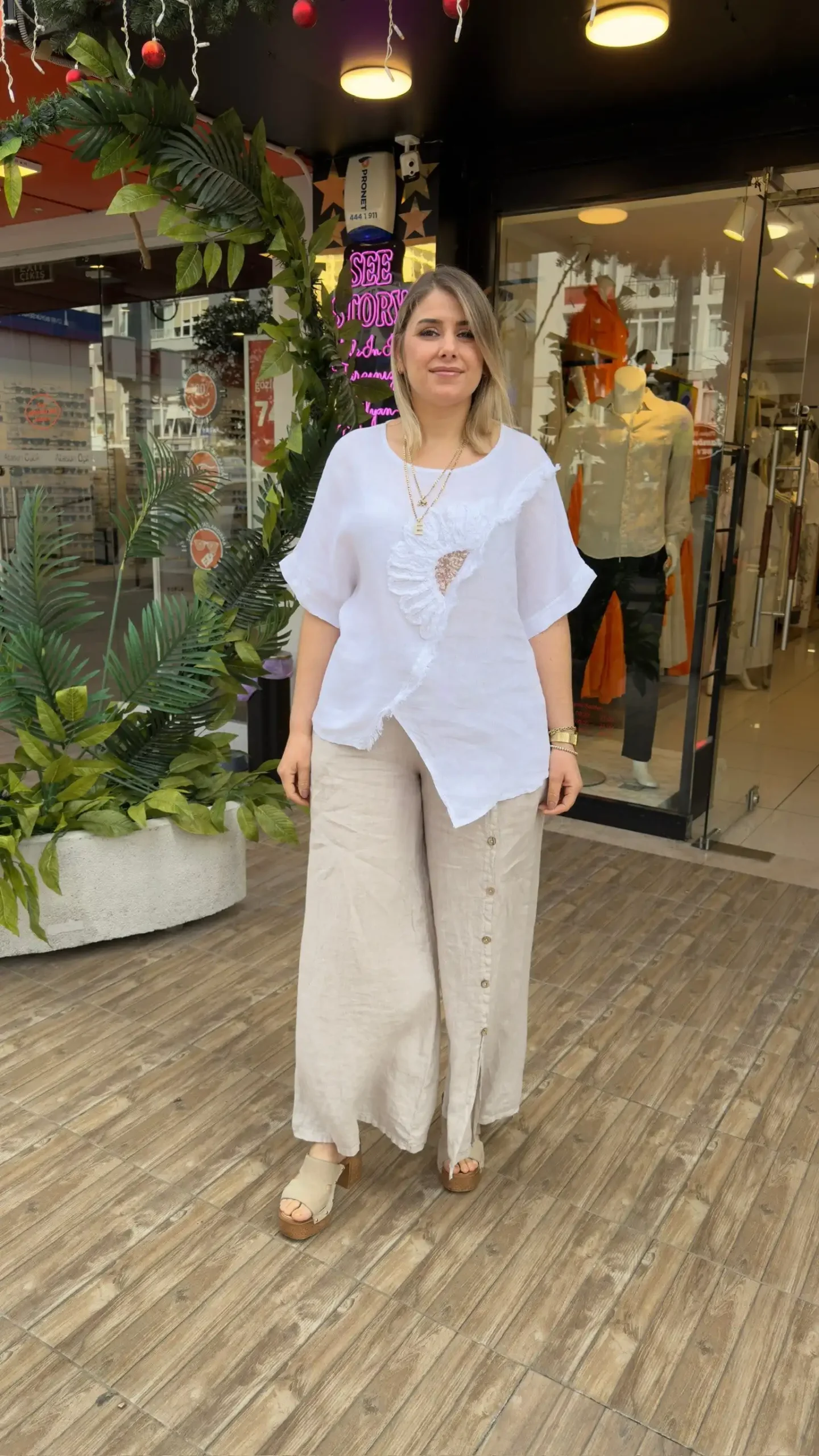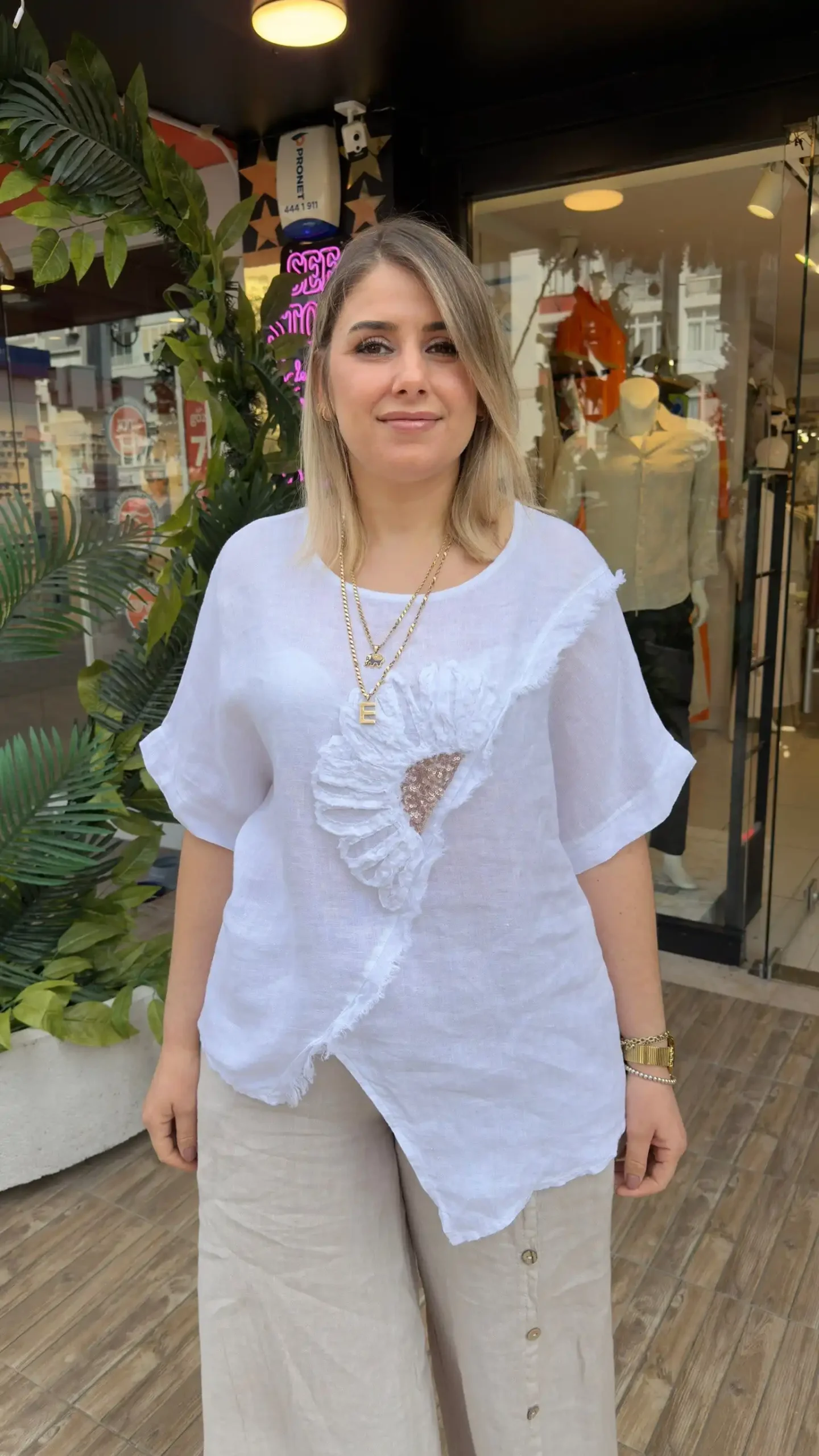Ürün Hakkında Detaylı Bilgi: Seestory dokunuşuyla stilinize doğal bir şıklık katın! Saf keten dokusuyla yaz aylarında nefes alan konfor sunan bu İtalyan bluz, ön kısmındaki hareketli asimetrik kesimi ve el işçiliği görünümlü çiçek detayıyla fark yaratıyor. 38’den 46 bedene kadar mükemmel uyum sağlayan geniş kesimi, hem günlük kombinlerinizde hem de şık akşam davetlerinde keten pantolon veya şortlarla kombinlemek için idealdir. Morun en asil tonuyla enerjinizi yükseltin.