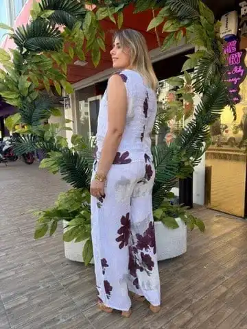 Yaz sezonunun en trend parçalarından olan yelek ve pantolon ikilisi, İtalyan dokunuşu ve sanatsal çiçek desenleriyle yeniden yorumlandı. Nefes alan linen keten kumaşı sayesinde en sıcak günlerde bile ferah bir kullanım sunan bu takım, hem şık davetlerde hem de günlük stilinizde fark yaratmanızı sağlar.