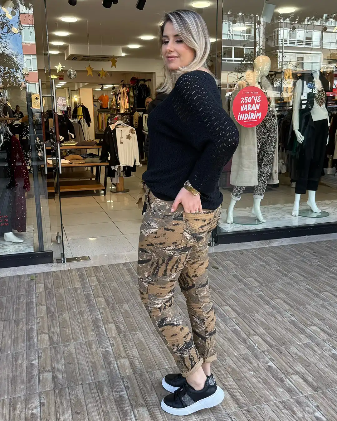 İtalyan Kaplan Desenli Full Likralı Pantolon ( 38 48 Uyumlu )