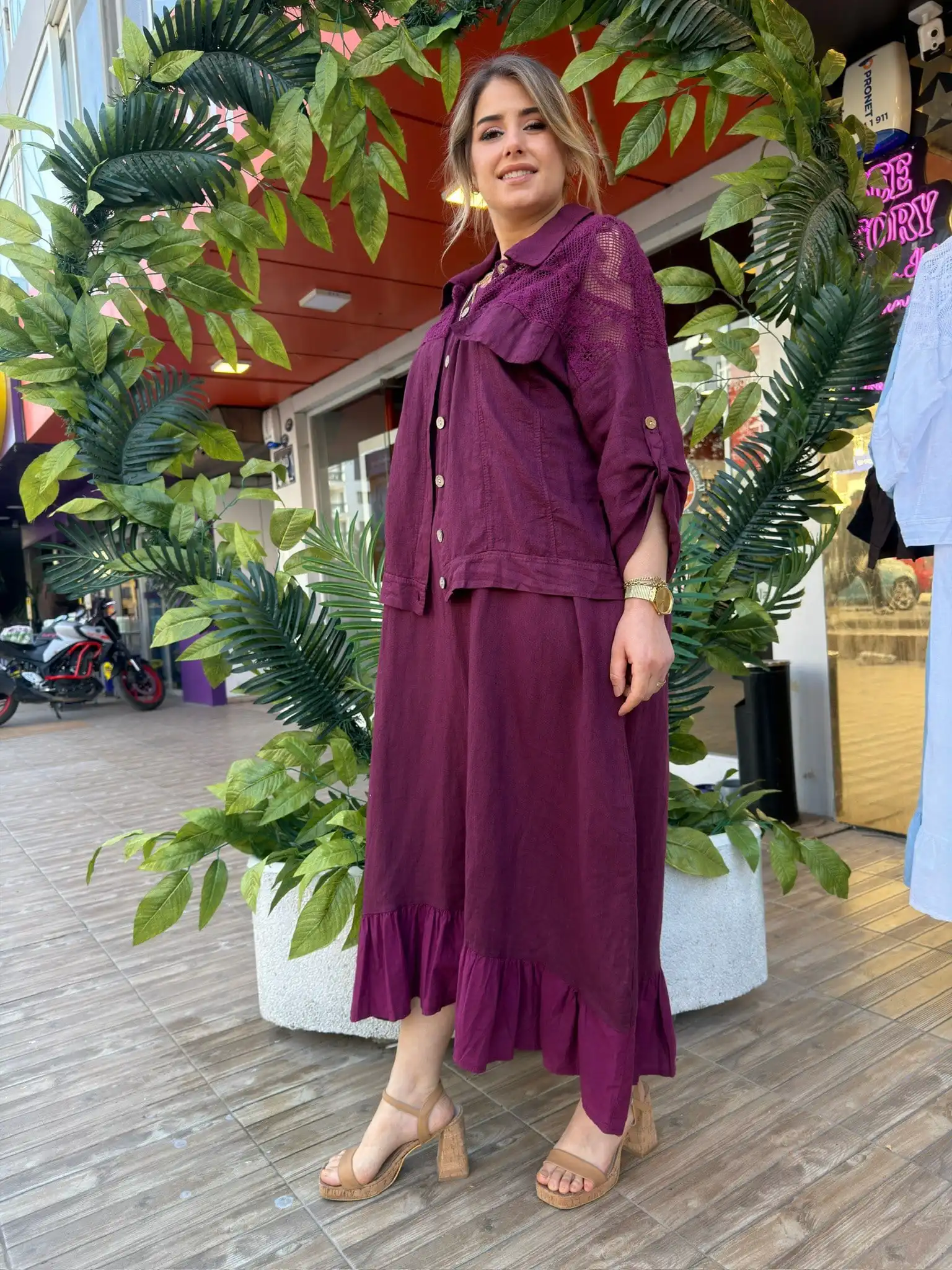 Kullanım Önerisi: Takım olarak kullanıldığında zahmetsiz bir şıklık sunan bu parçaları, dilerseniz farklı kombinlerde de değerlendirebilirsiniz. Ketenin doğal kırışıklık dokusu ürünün kalitesini ve doğallığını yansıtır.