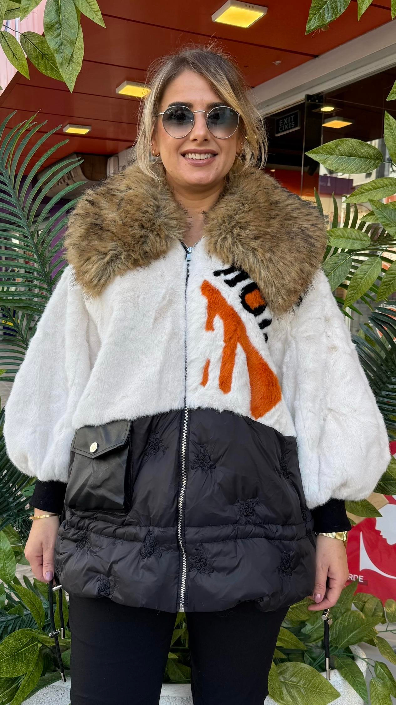 Kürk Deri Detaylı Desenli Tasarım Mont