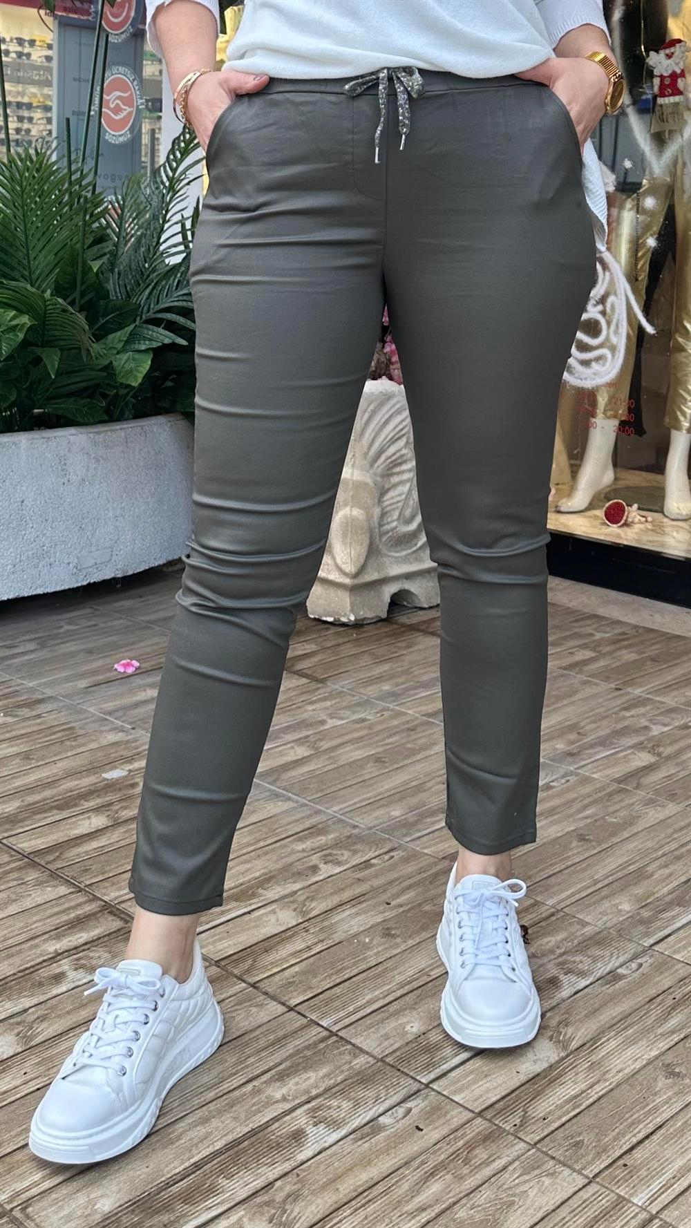 SEE7 İTALY MUMLU BELİ LASTİKLİ İPLİ FULL LİKRALI PANTOLON